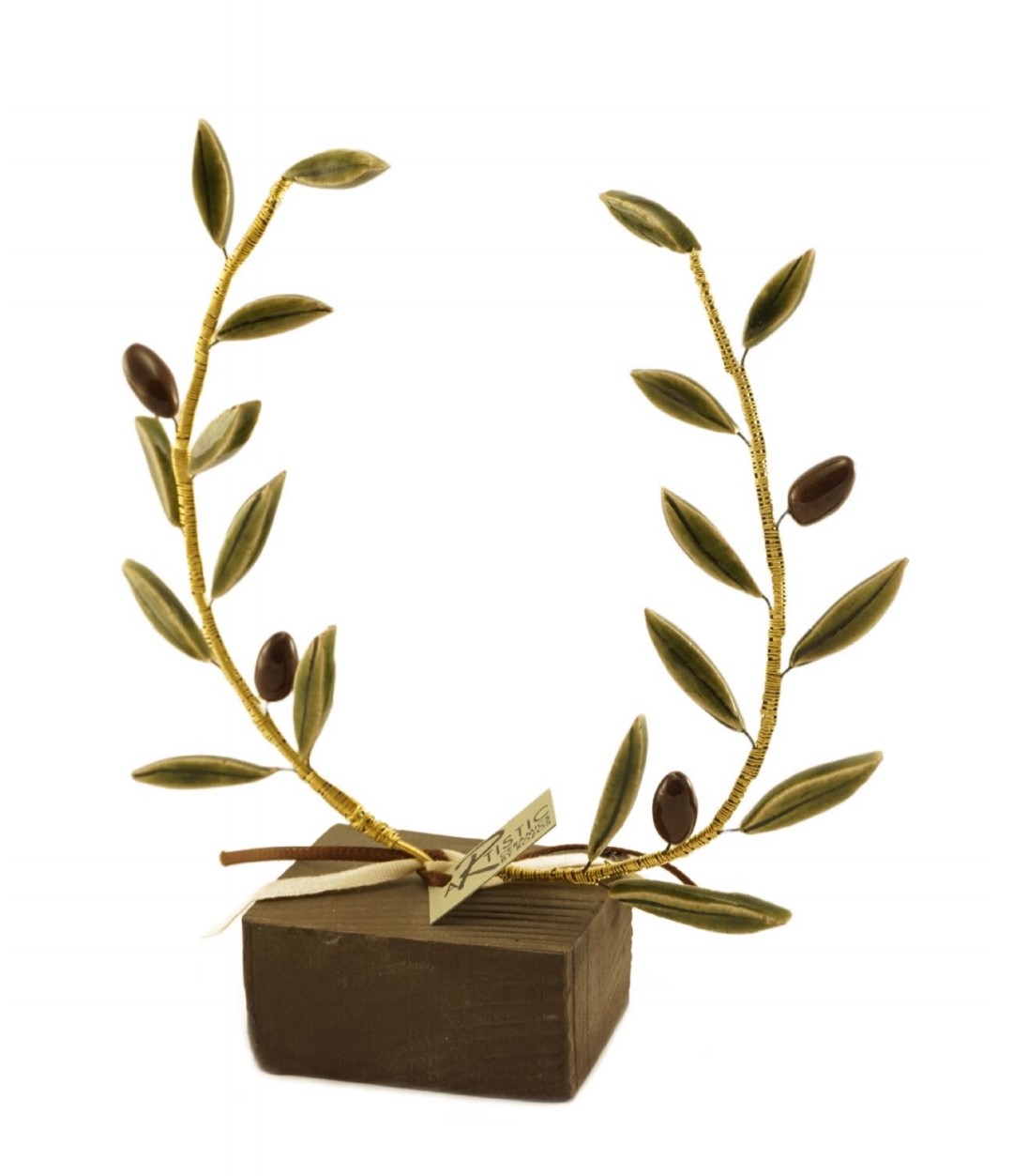 Χειροποίητο επιτραπέζιο κεραμικό γούρι ελιάς με διάσταση 16χ5εκ.