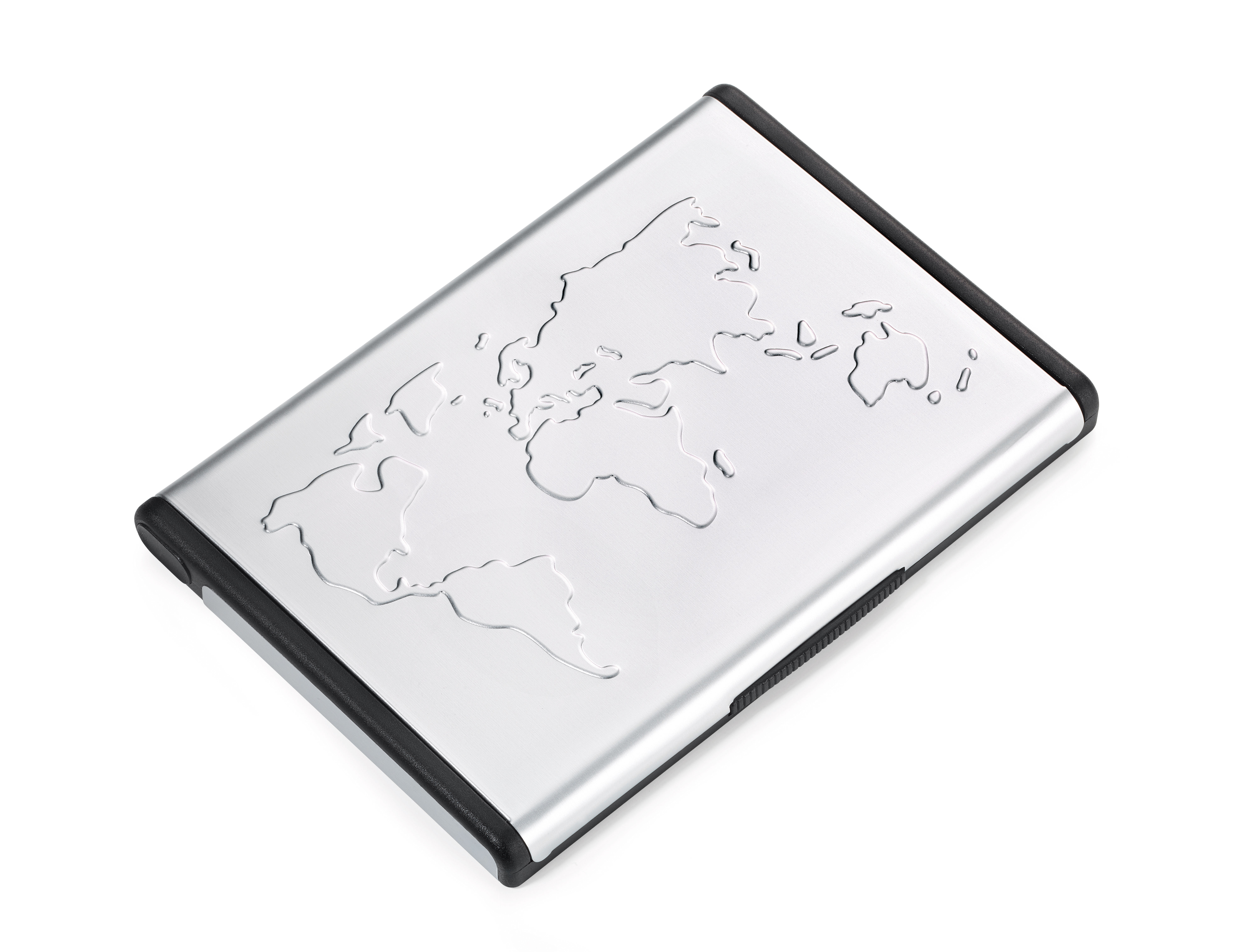 με το πάτημα ενός κουμπιού για την τσέπη και το γραφείο σε διάσταση 10,2εκ. χ 7,2εκ. με ανάγλυφο τον παγκόσμιο χάρτη.