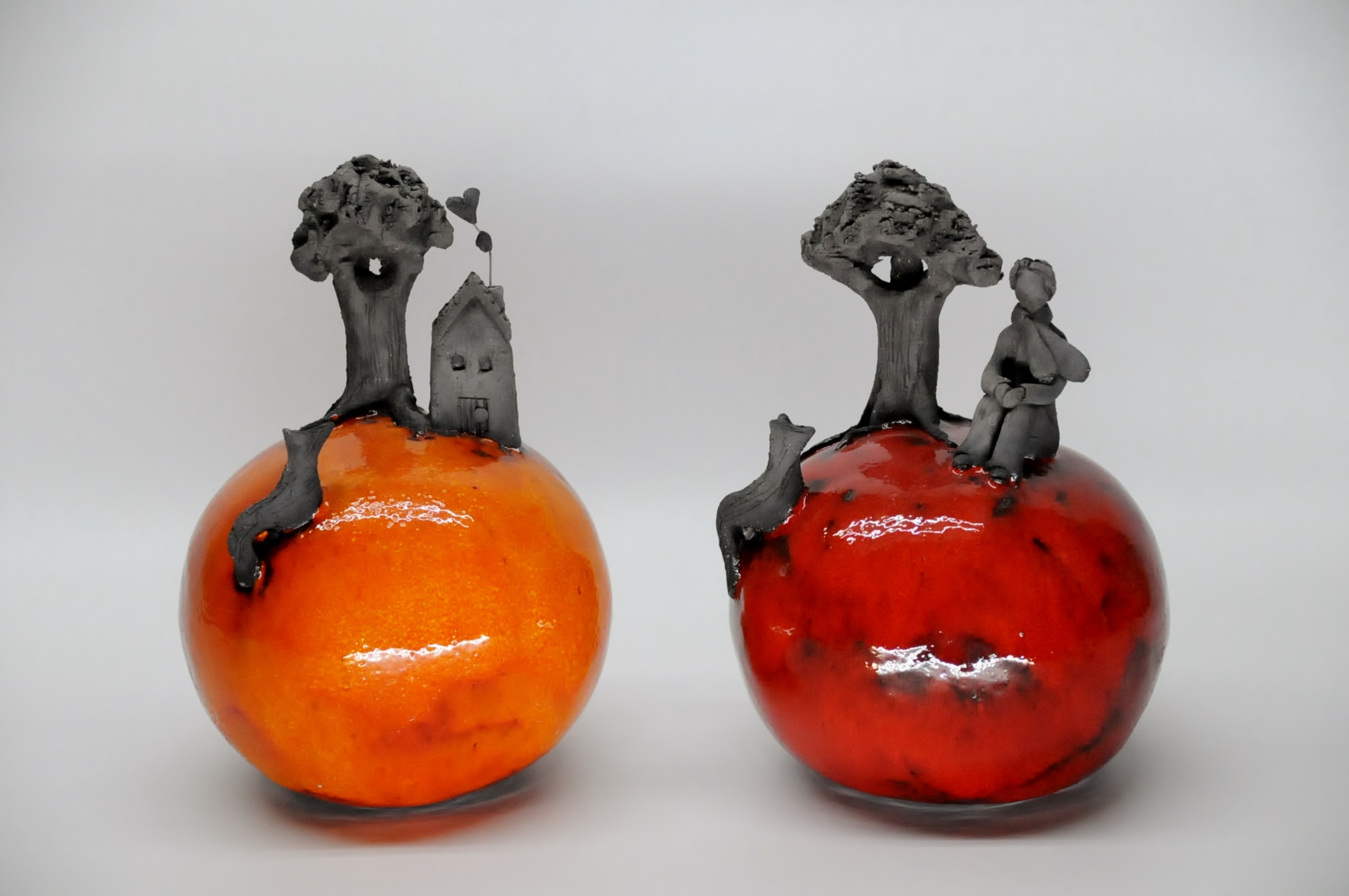 Χειροποίητος κεραμικός Μικρός Πρίγκιπας πάνω σε πλανήτη σε δύο χρώματα και διάσταση ύψους 22εκ. και βάρος 1000γρ, εμπνευσμένα και κατασκευασμένα από την κεραμίστρια Μπλίντζιου Ευαγγελία