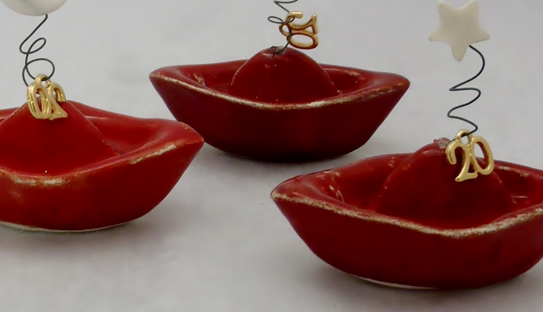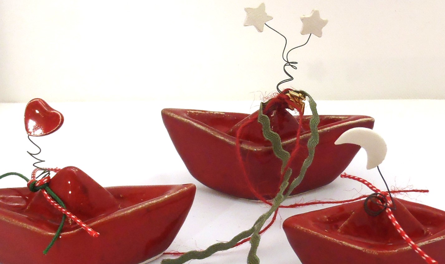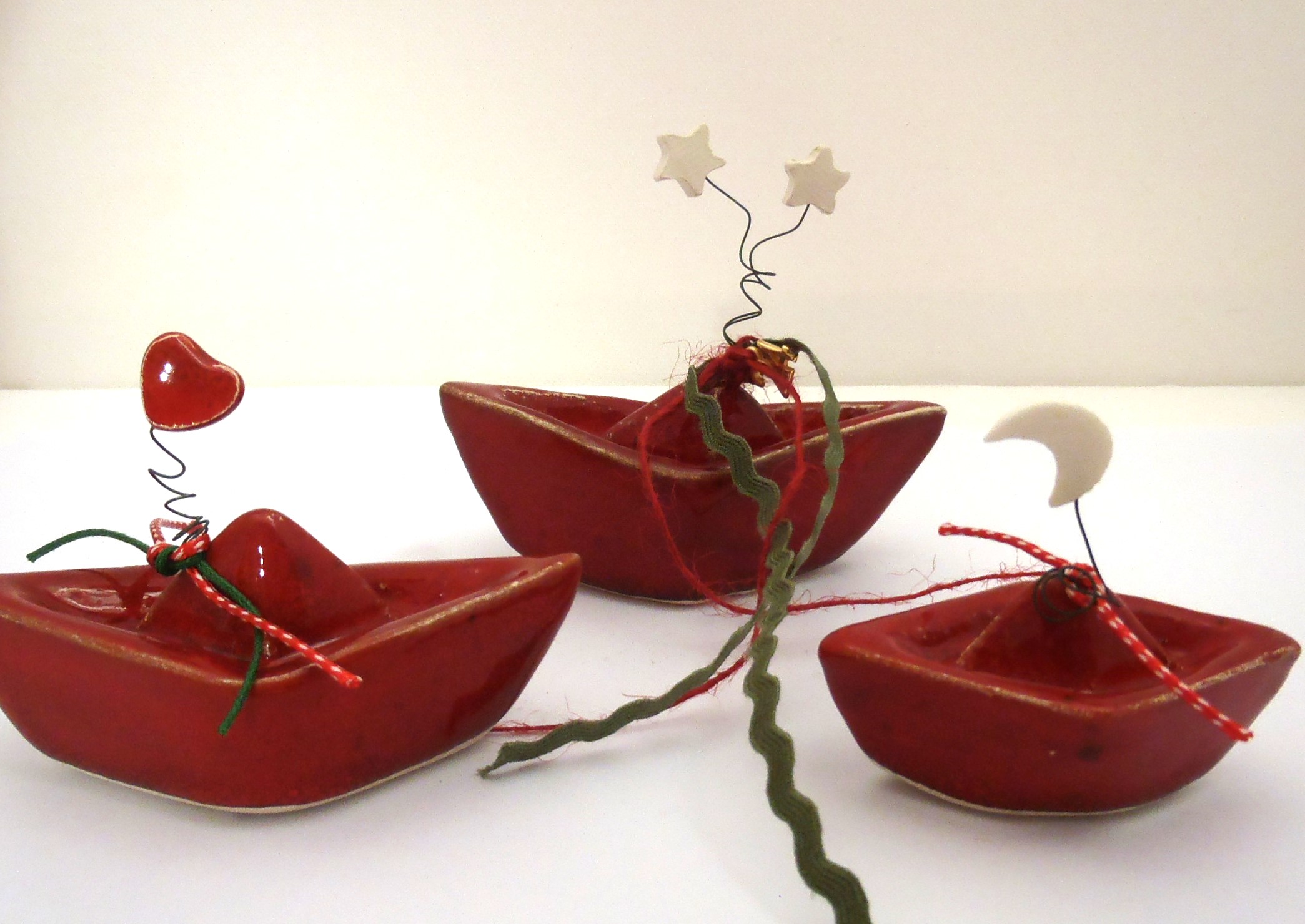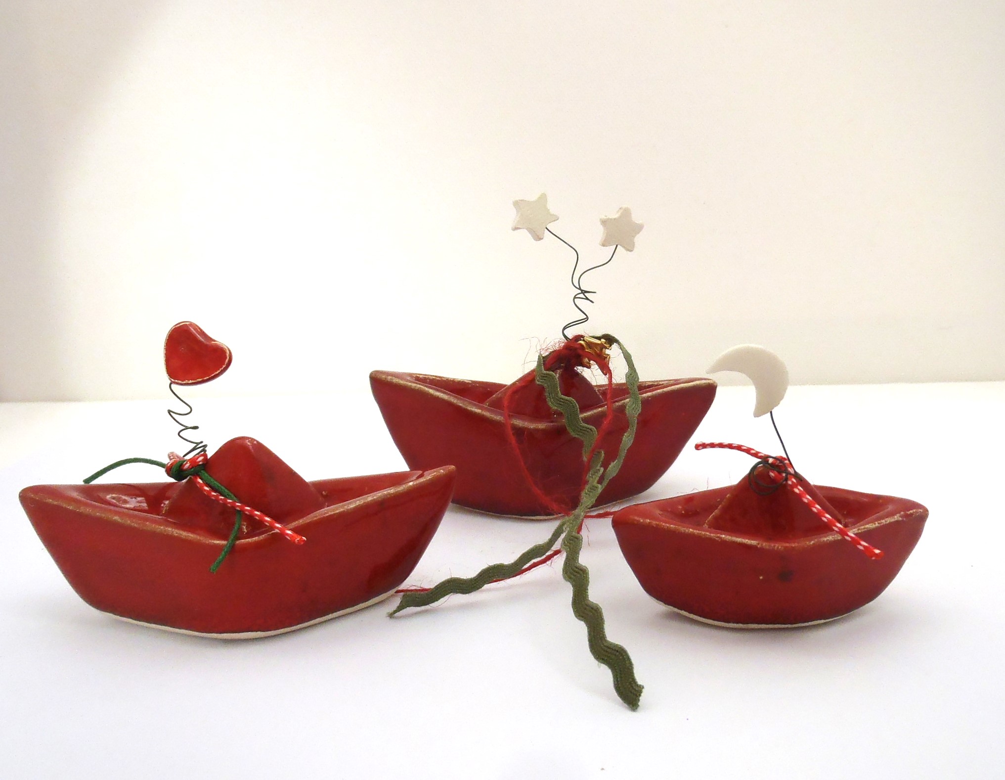 Χειροποίητες επιτραπέζιες κεραμικές βαρκούλες γούρια ελληνικής κατασκευής σε τρις διαστάσεις 6χ3εκ. - 8χ4εκ. - 9χ4εκ.