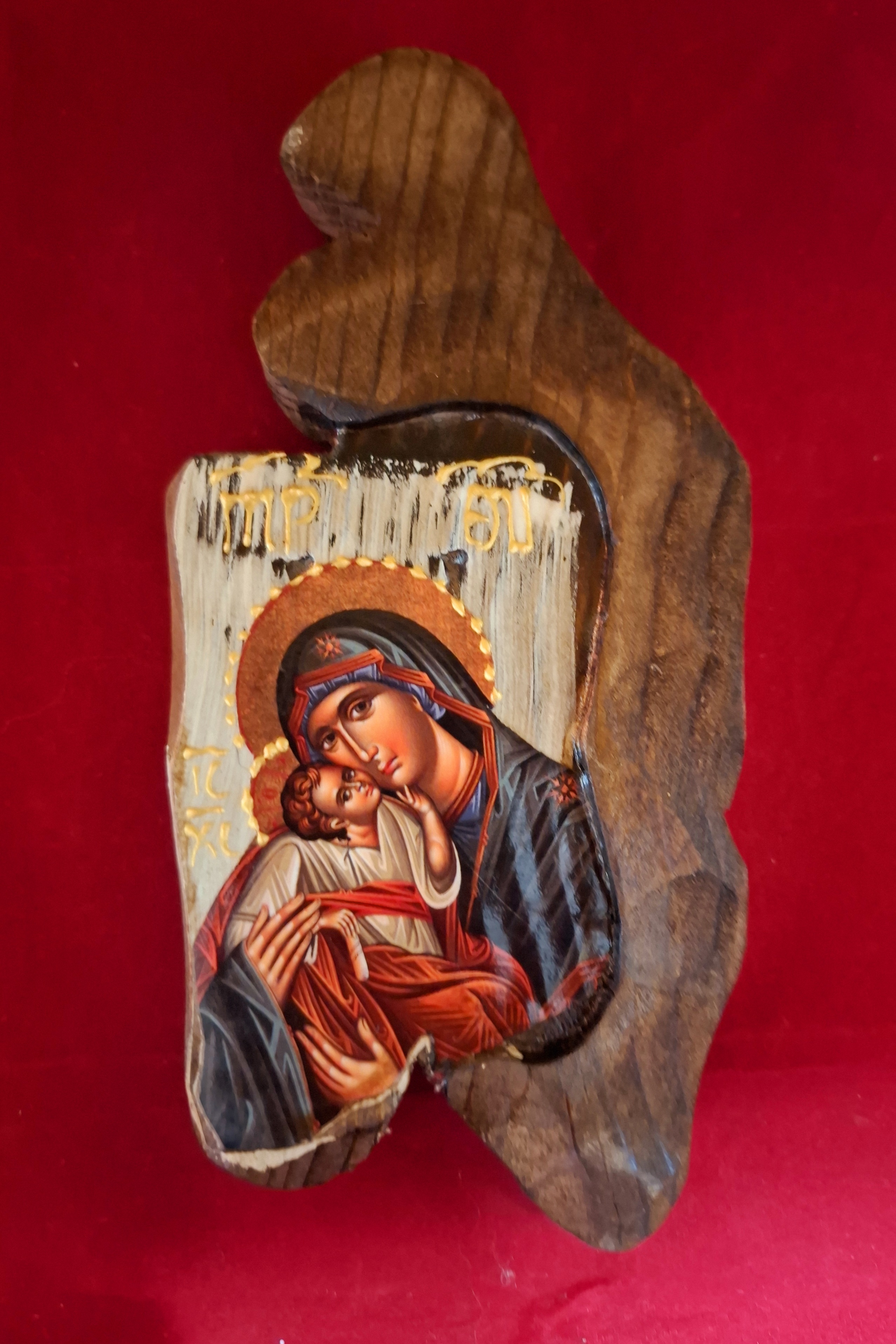 Ελληνική χειροποίητη βυζαντινή ξύλινη εικόνα δουλεμένη πάνω σε παλαιό ξύλο με σκάλισμα