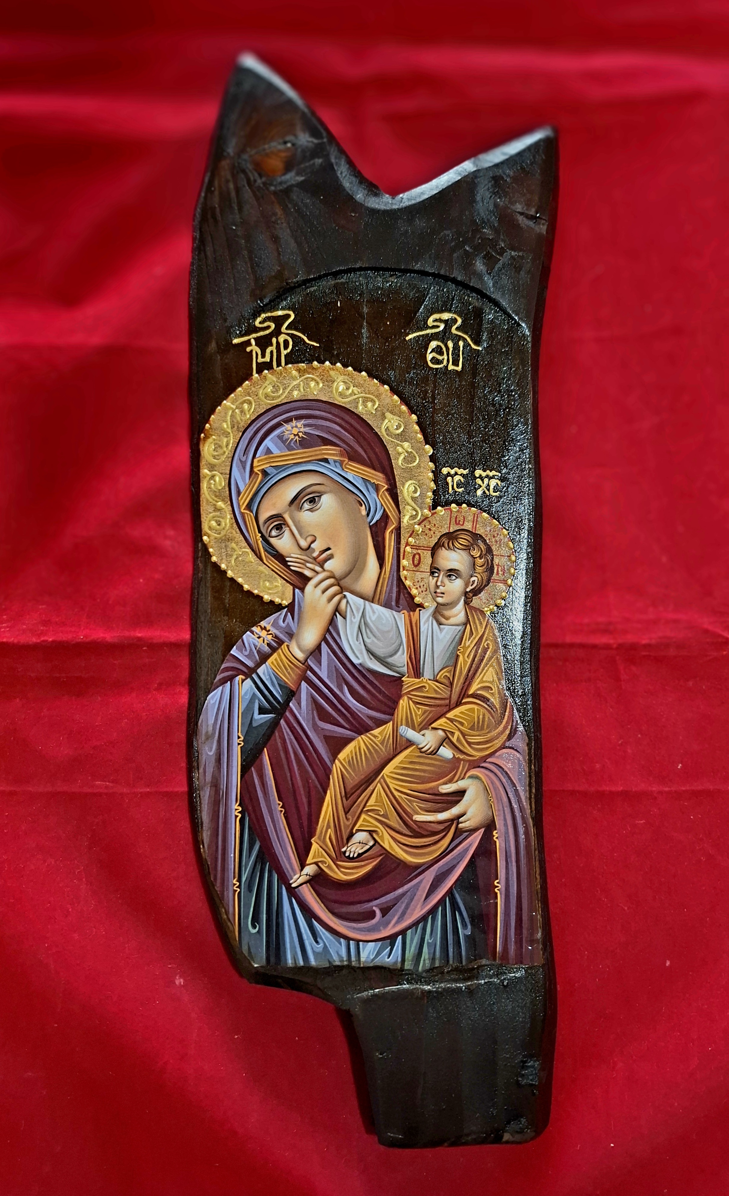 Ελληνική χειροποίητη βυζαντινή ξύλινη εικόνα δουλεμένη πάνω σε παλαιό ξύλο με σκάλισμα