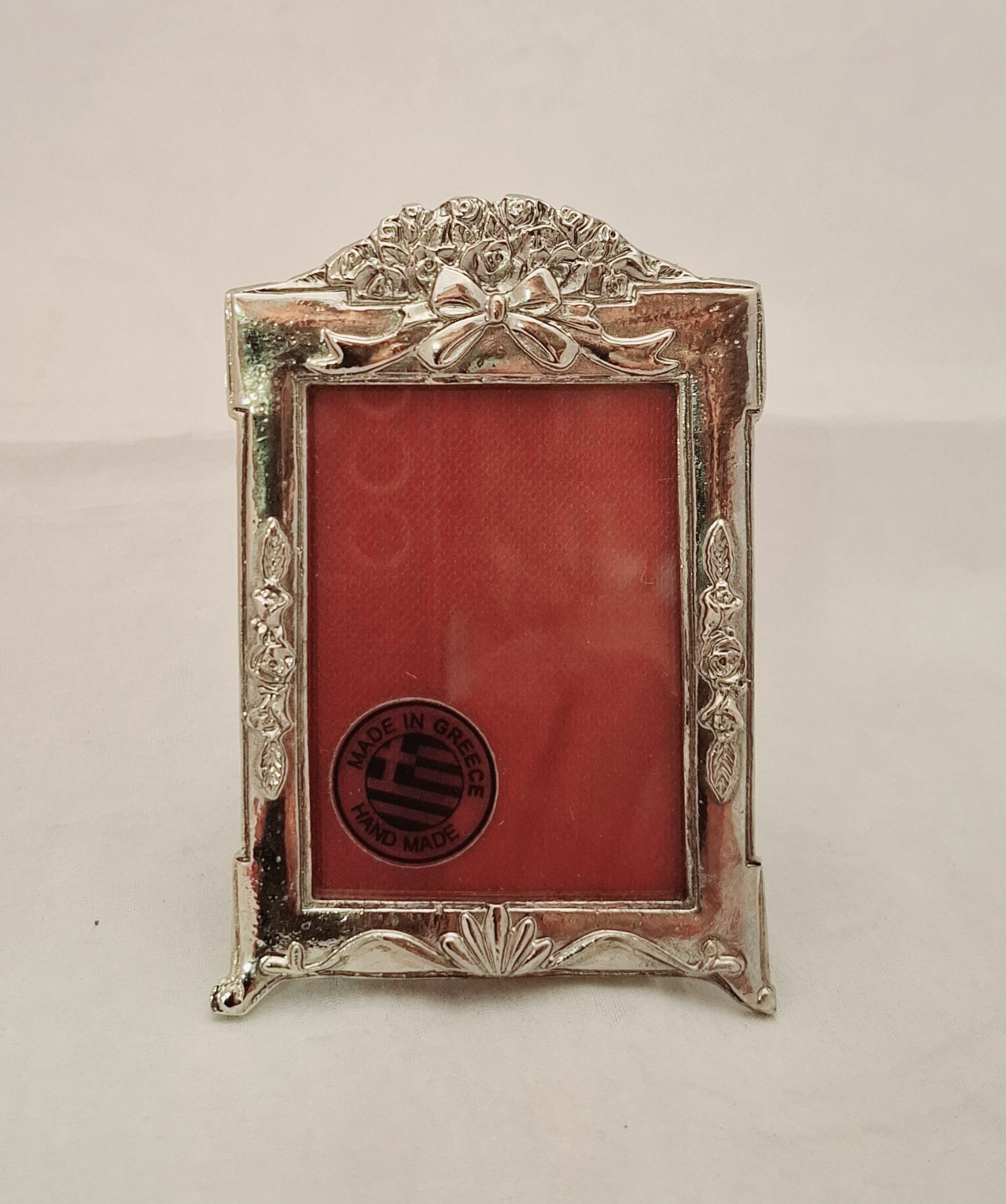 Χειροποίητη κορνίζα ελληνικής κατασκευής κατασκευασμένη από κράμα κασσίτερου και φύλλο ασημιού 9χ6εκ. σε διάσταση φωτογραφίας 7 x 4,5εκ.