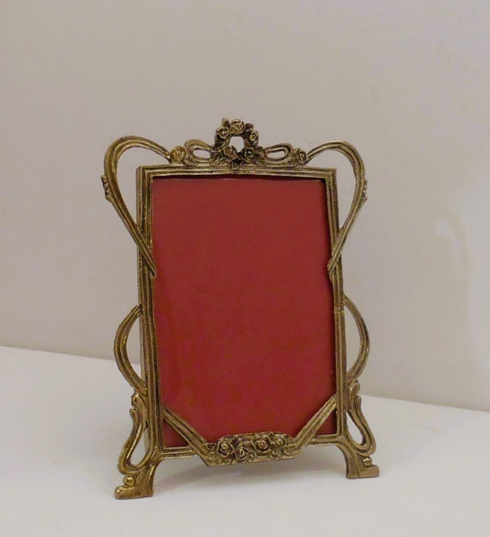 Χειροποίητη χρυσή κορνίζα ελληνικής κατασκευής από κράμα κασσίτερου με φύλλο χρυσού σε διάσταση κορνίζας 15χ12εκ. και διάσταση φωτογραφίας 11,5χ8εκ.