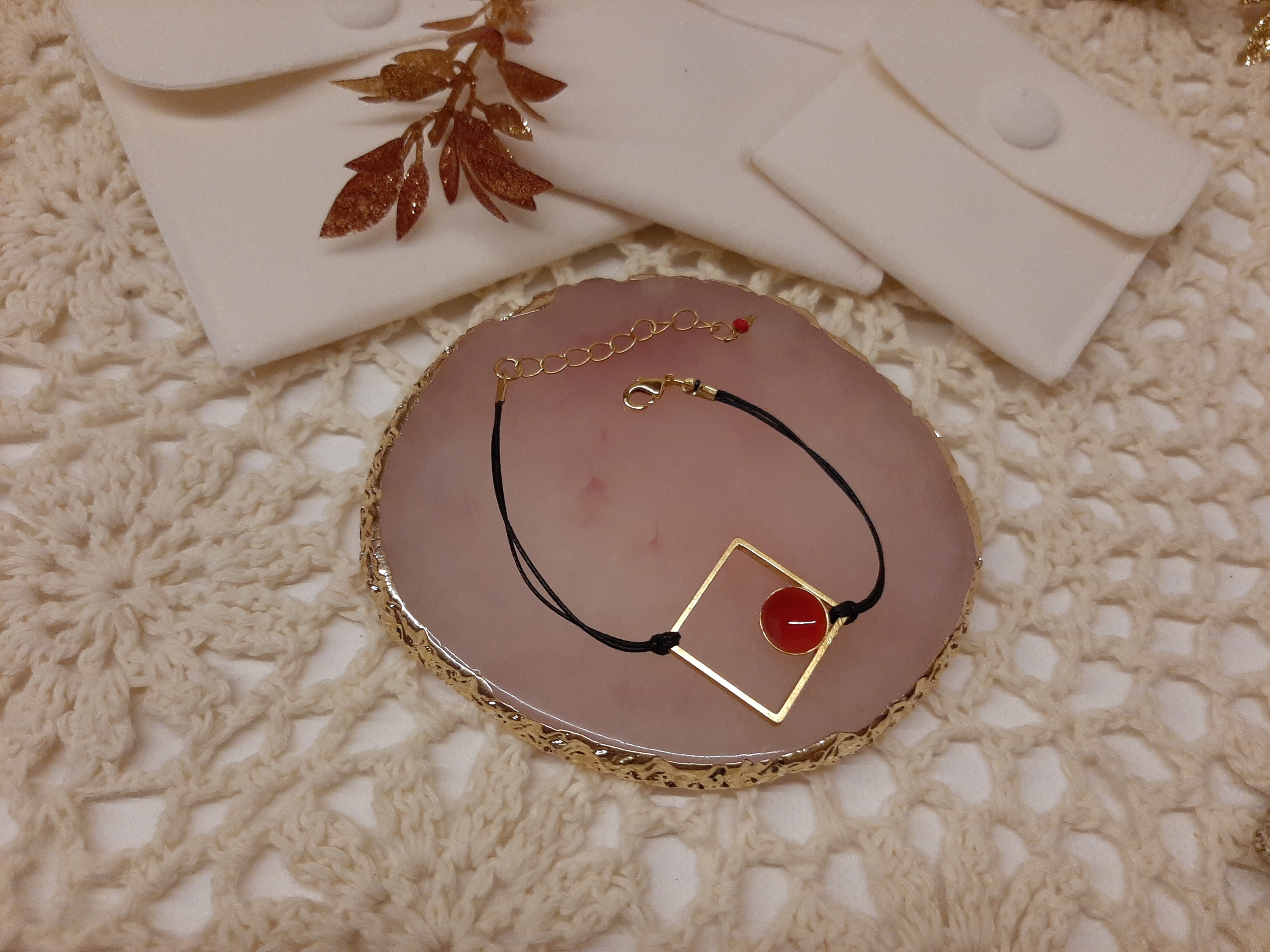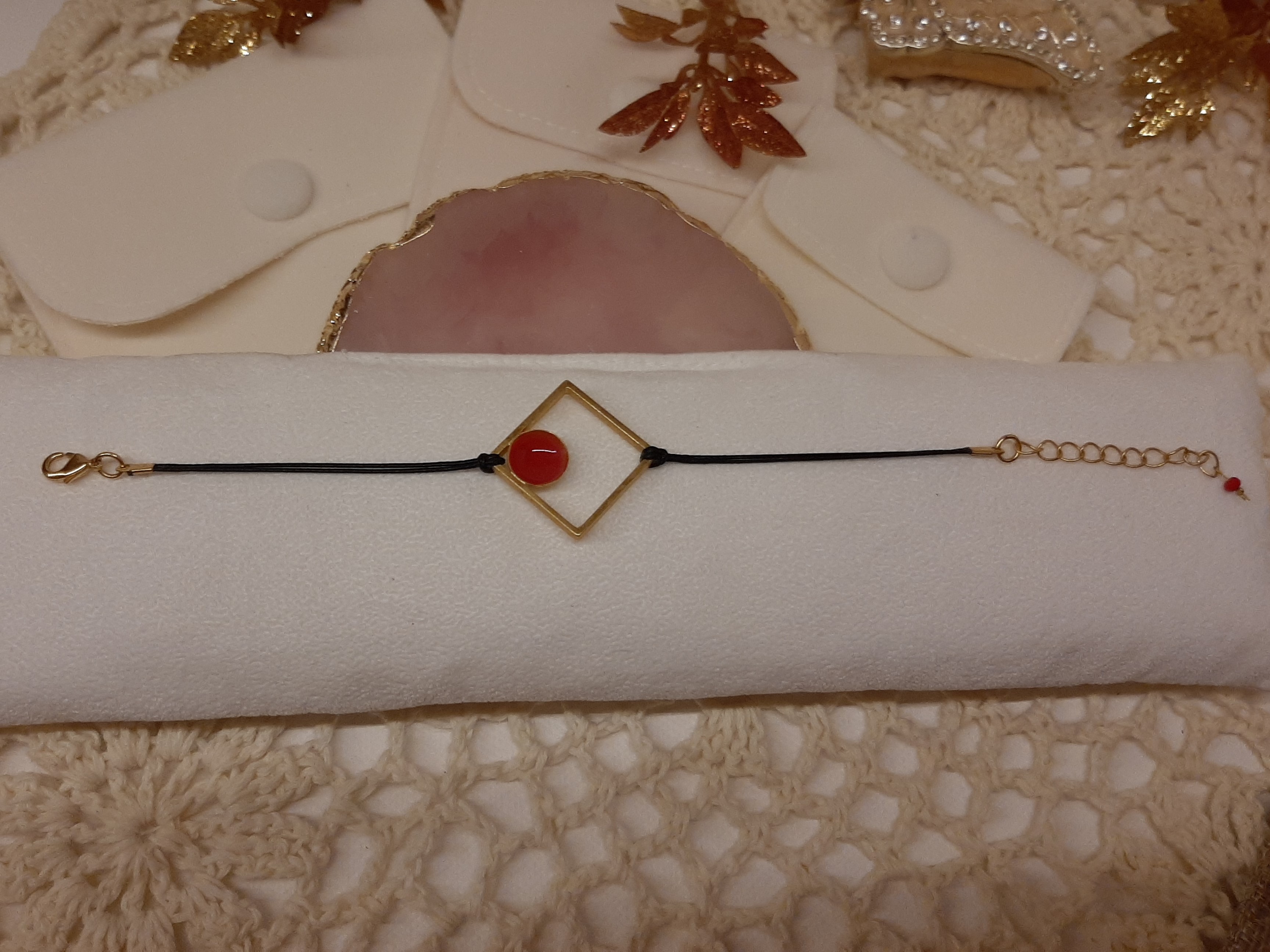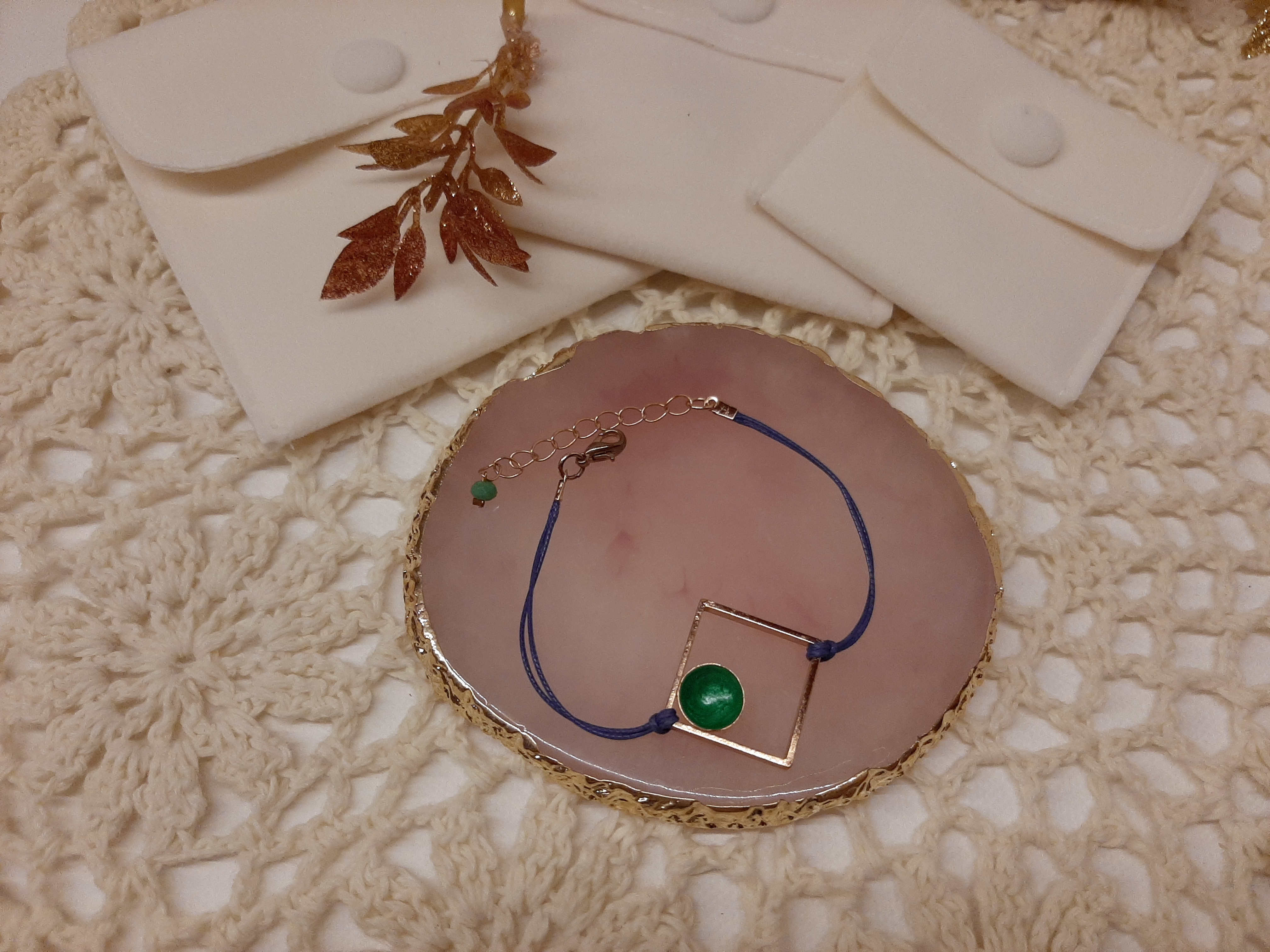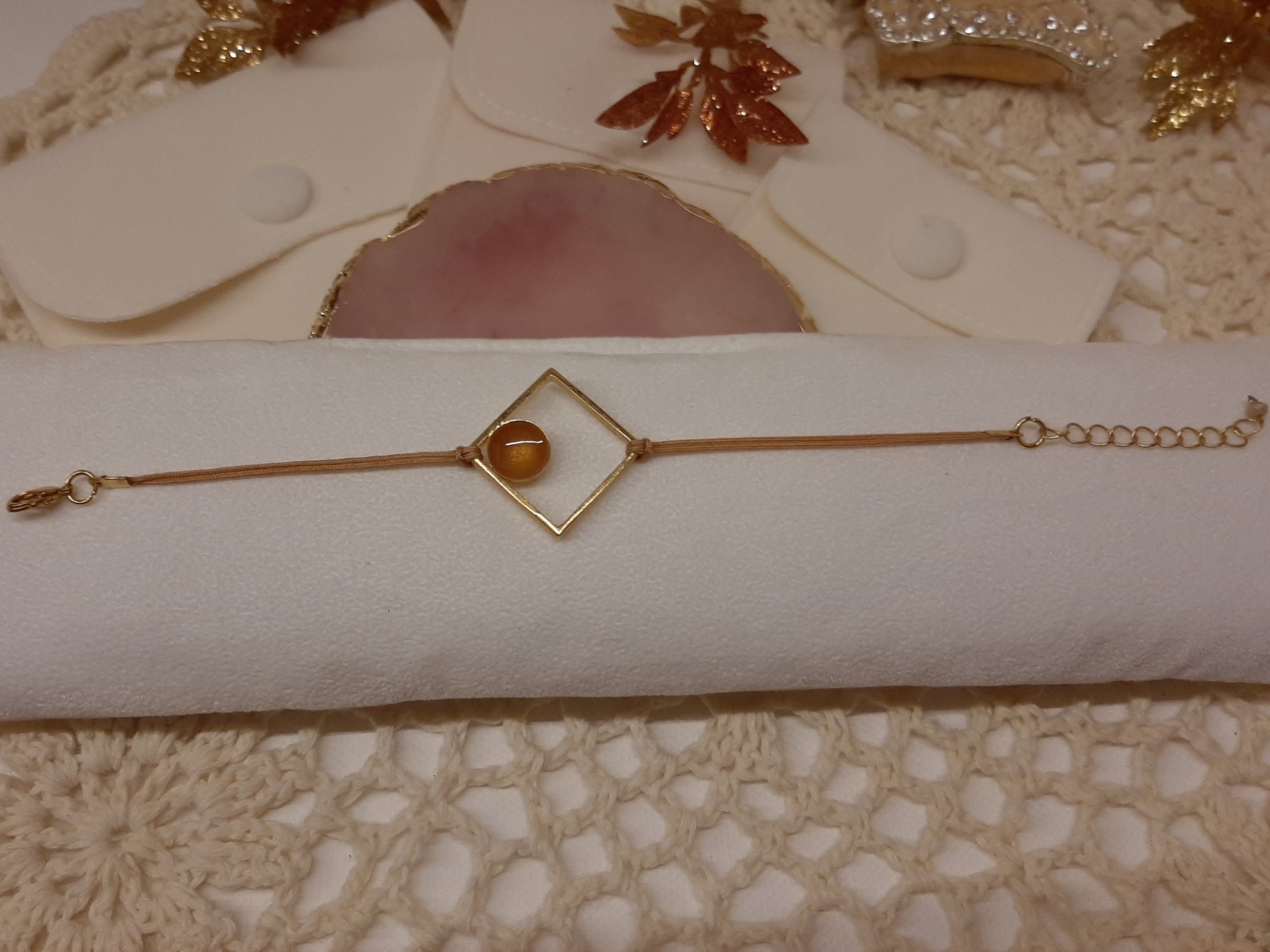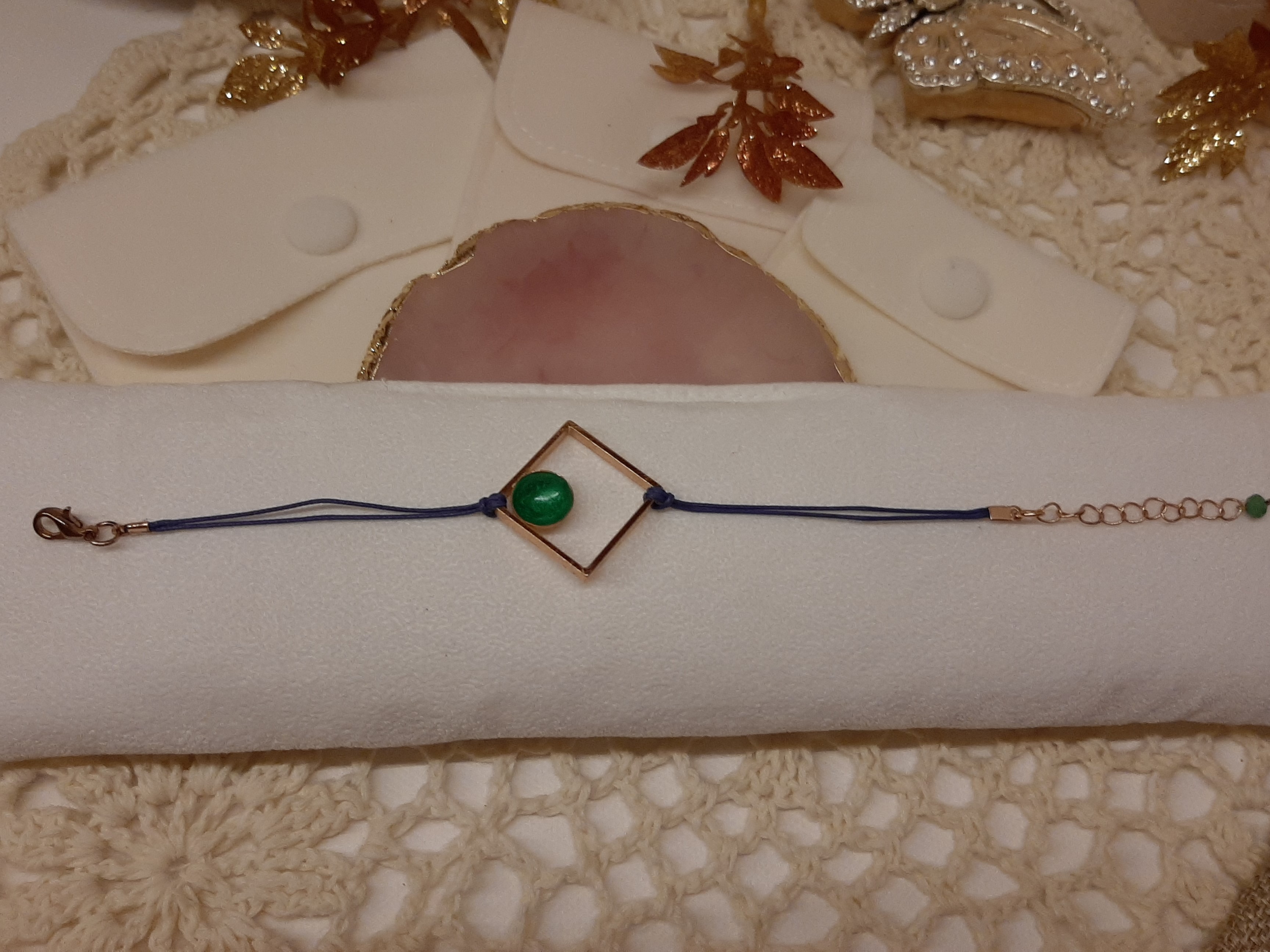Χειροποίητο βραχιολάκι τετράγωνο σχέδιο σε τρία χρώματα και διακοσμημένο με σμάλτο.