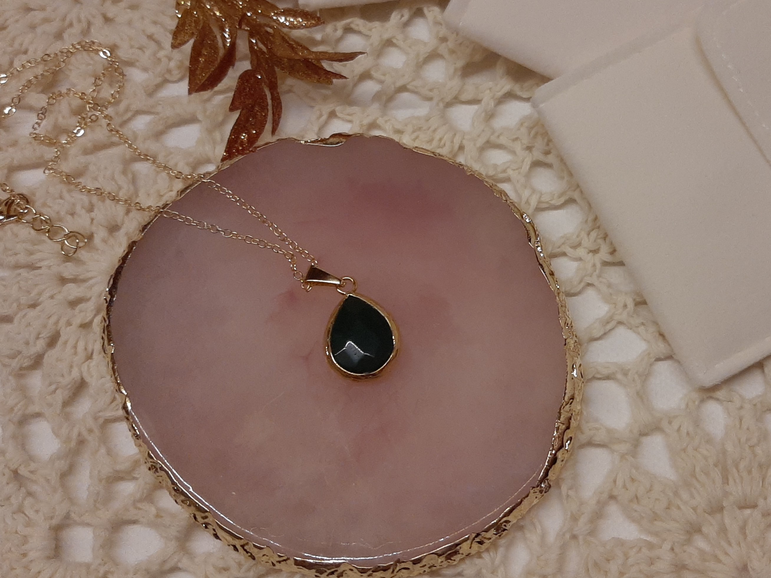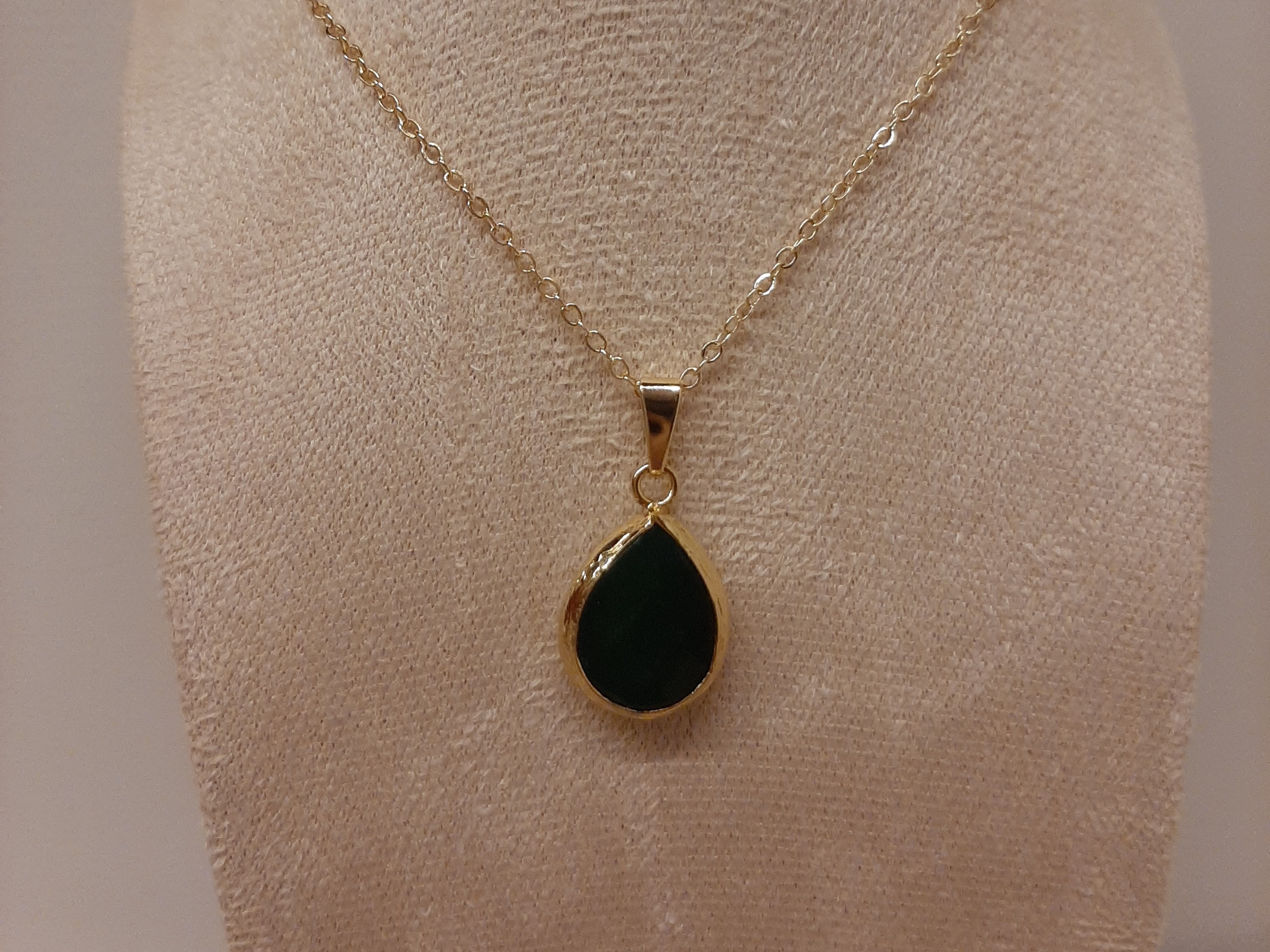 Ατσάλινο κολιέ με αλυσίδα και κρεμαστό πράσινο δάκρυ.