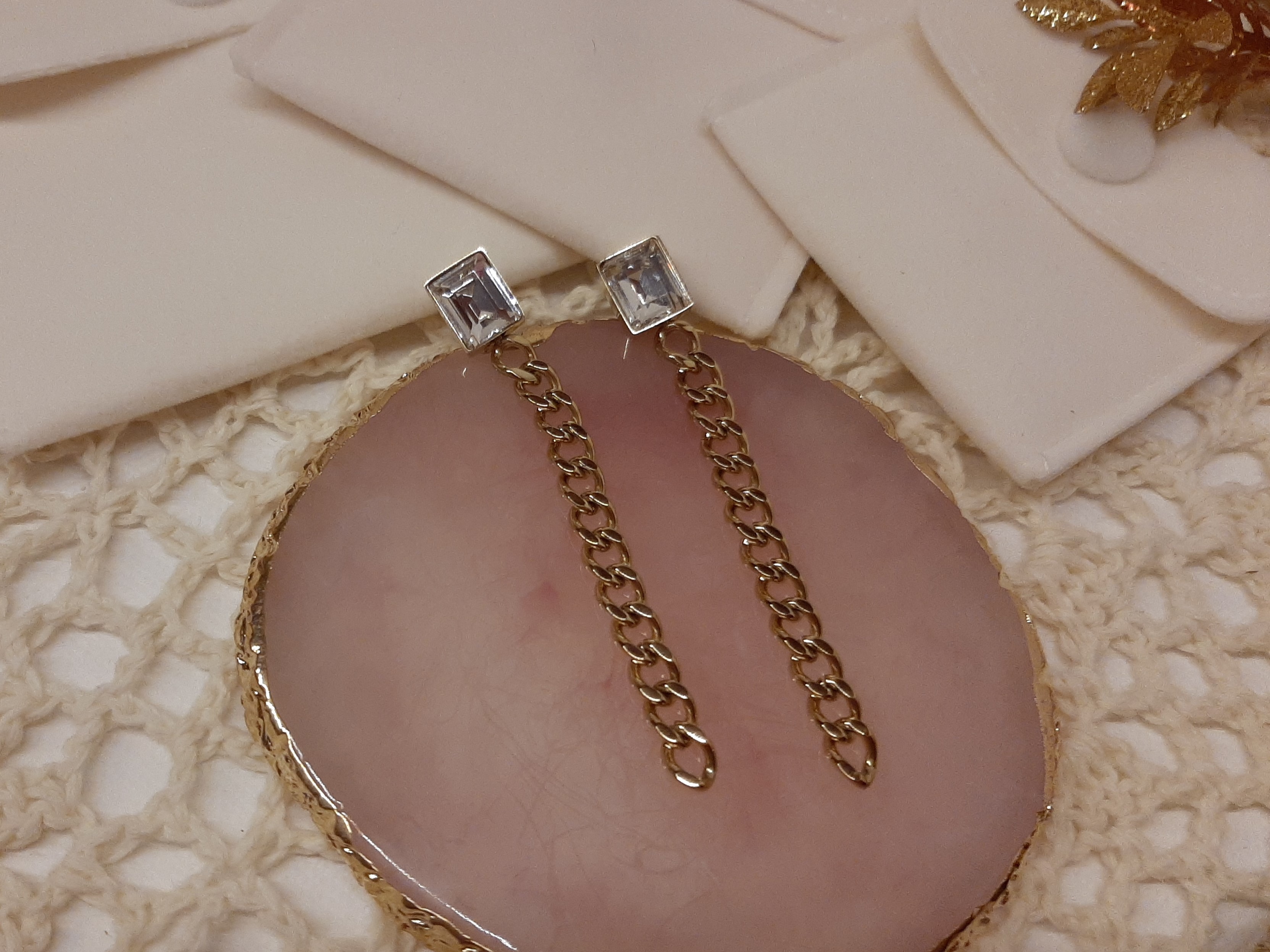 Ατσάλινα σκουλαρίκια αλυσίδα διακοσμημένα με πέρα λευκή σε χρυσό χρώμα