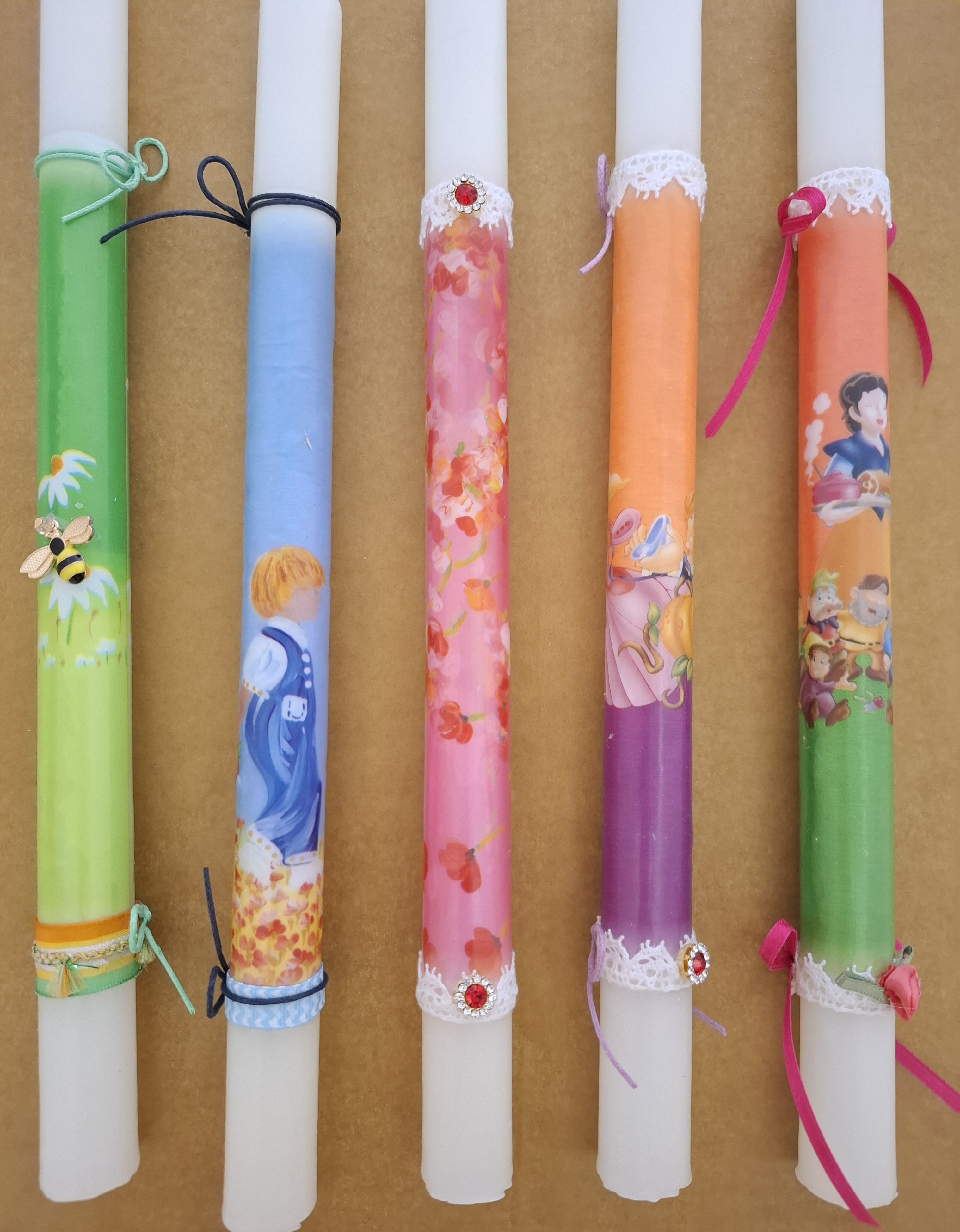 Χειροποίητες λαμπάδες και χειροποίητες αρωματικές λαμπάδες σε διάφορα χρώματα ντεκουπάζ με θέματα από παιδικά παραμύθια. 12-10-12-12-10