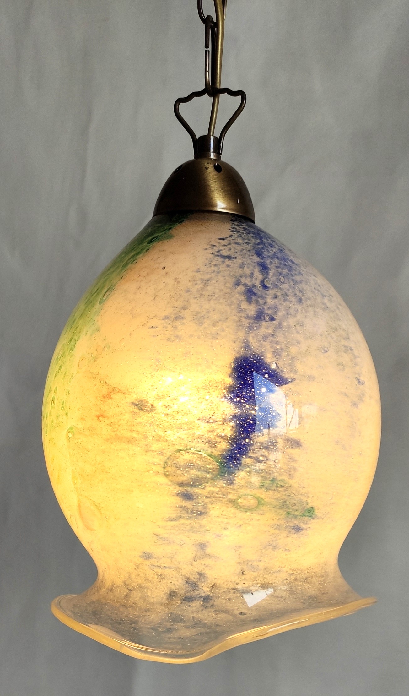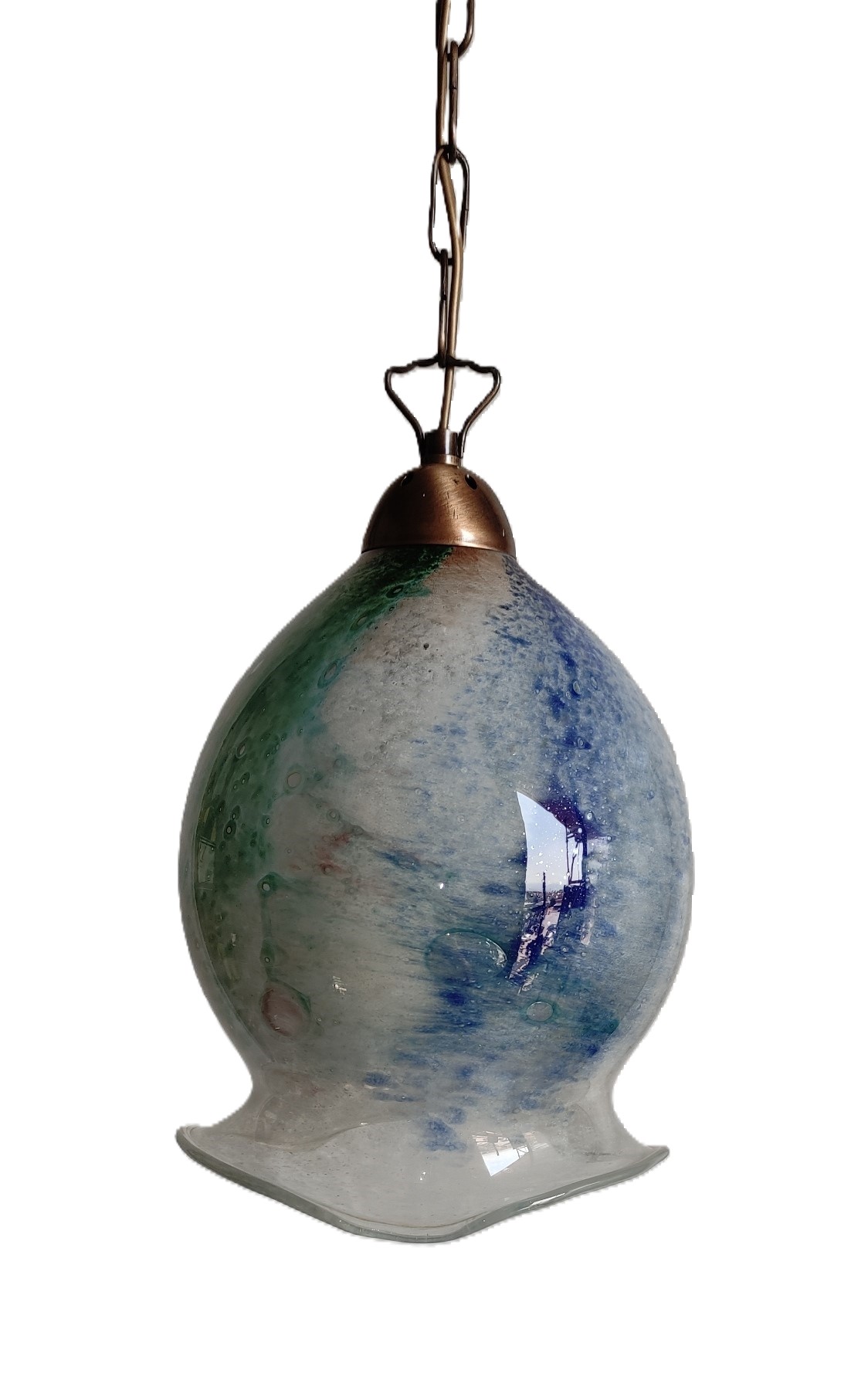 Χειροποίητο φωτιστικό οροφής από φυσητό γυαλί και μπρούτζινη βάση ελληνικής κατασκευής με