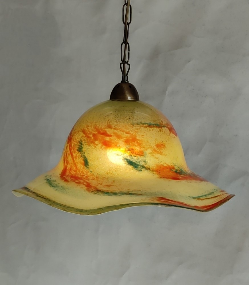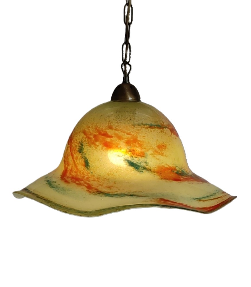 Χειροποίητο φωτιστικό οροφής από φυσητό γυαλί και μπρούτζινη βάση ελληνικής κατασκευής με