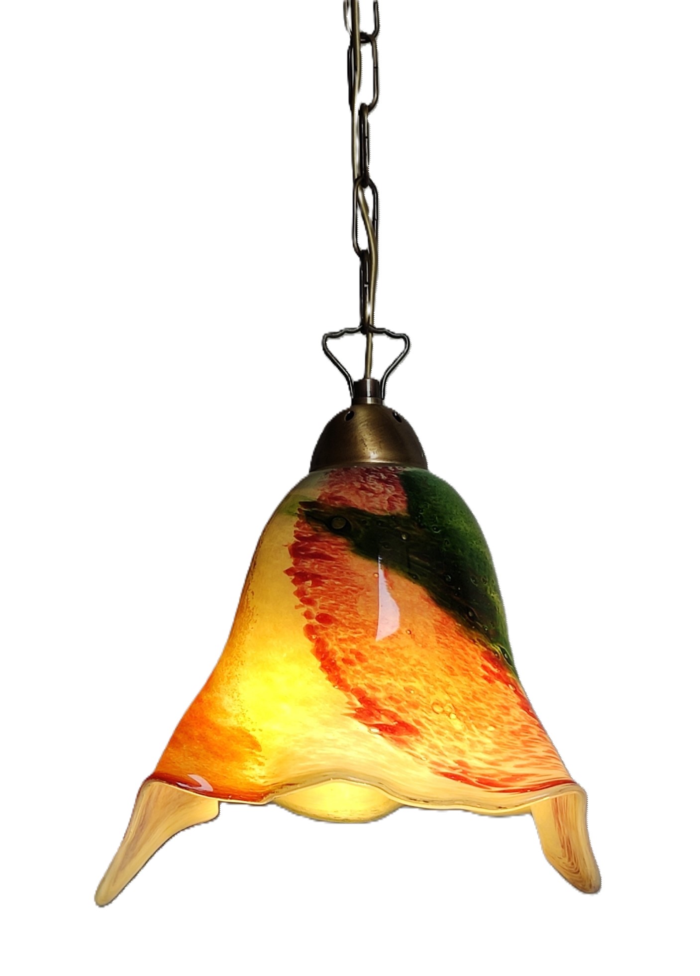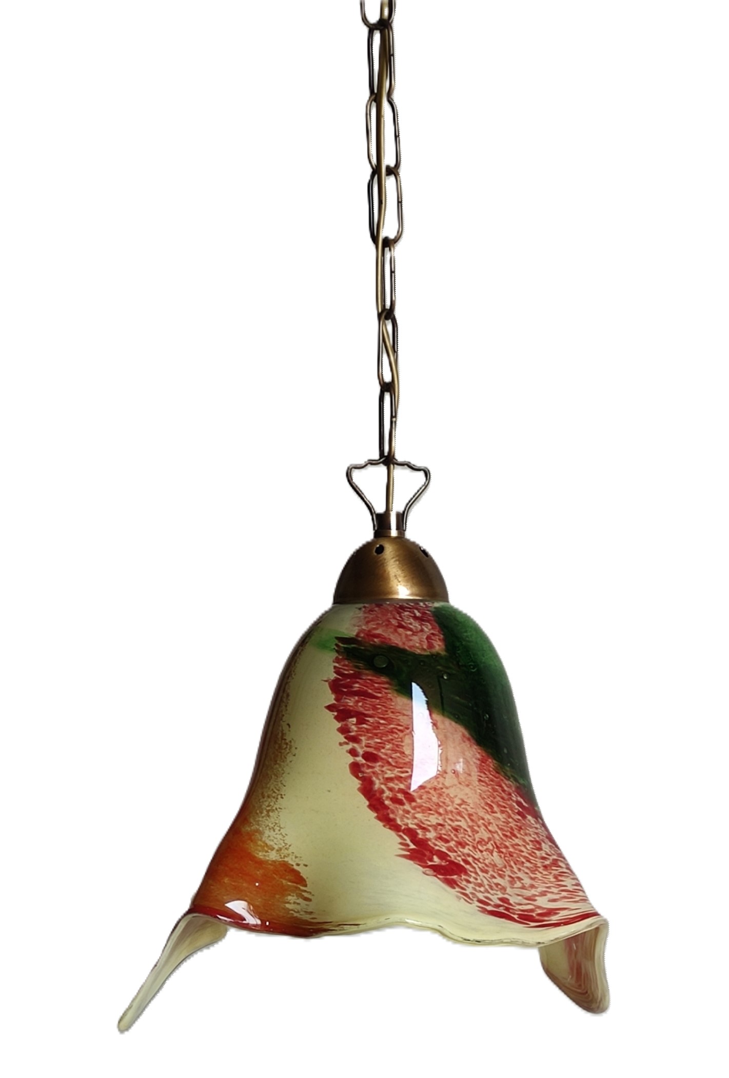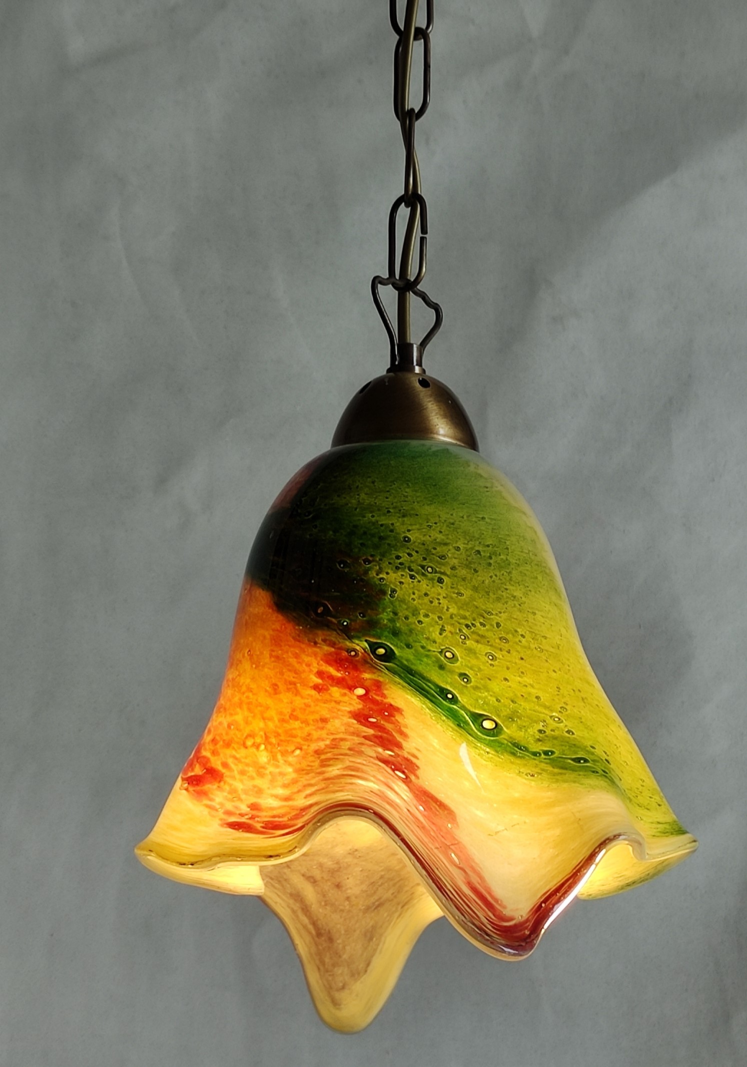 Χειροποίητο φωτιστικό οροφής από φυσητό γυαλί και μπρούτζινη βάση ελληνικής κατασκευής με