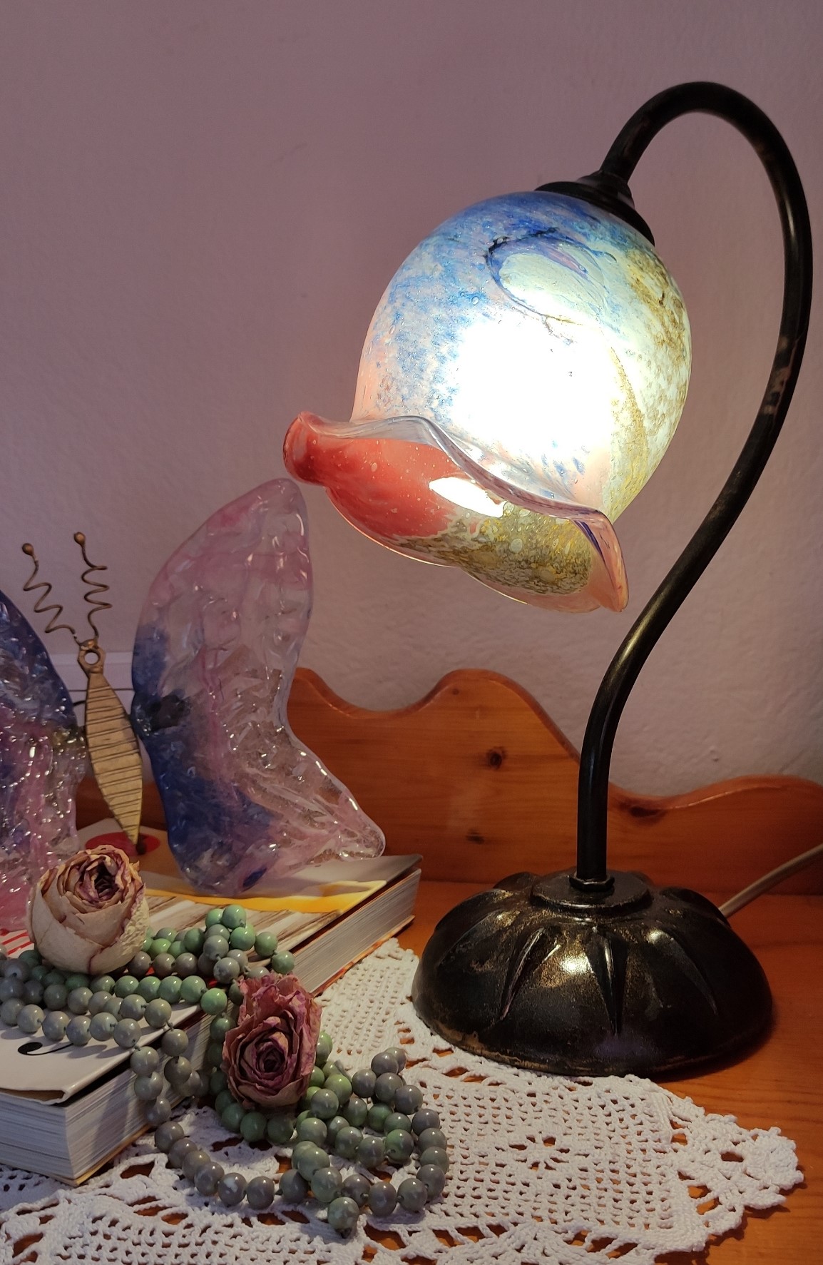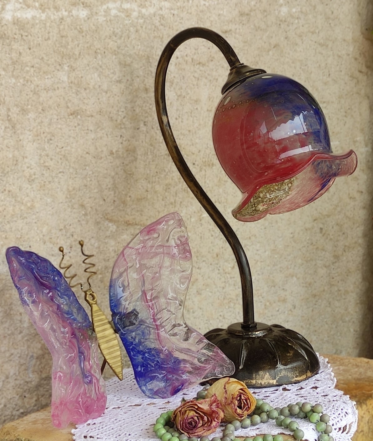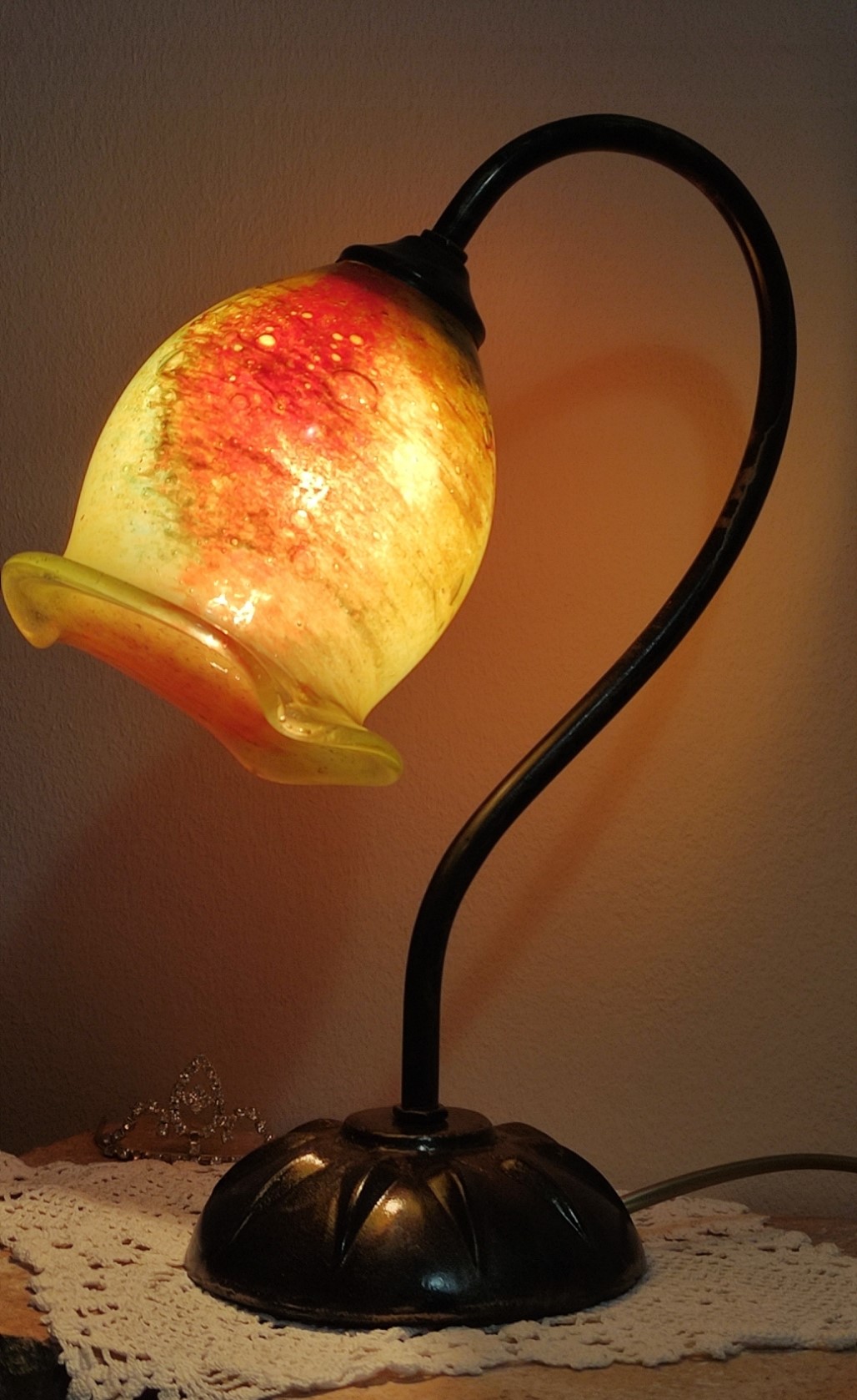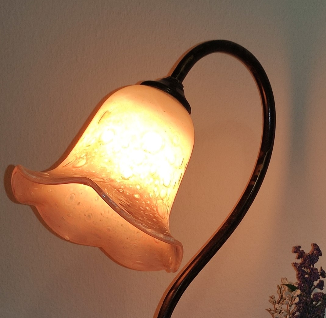 Χειροποίητο πορτατίφ ελληνικής κατασκευής από φυσητό γυαλί και μπρούτζο σε ύψος περίπου τα 32εκ. E14. Υπάρχει η δυνατότητα επιλογής γυαλιού.