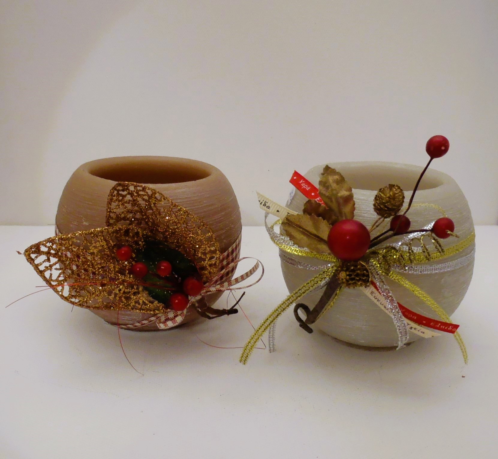 Χειροποίητο κερί θήκη με διακόσμηση σε δύο χρώματα και διάσταση 10χ8εκ.