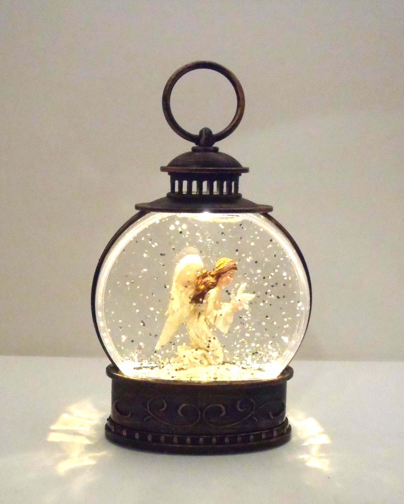 Επιτραπέζιο φαναράκι νερόμπαλα με άγγελο που φωτίζεται σε διάσταση 13χ9εκ. το οποίο μπορεί και να κρεμαστεί.