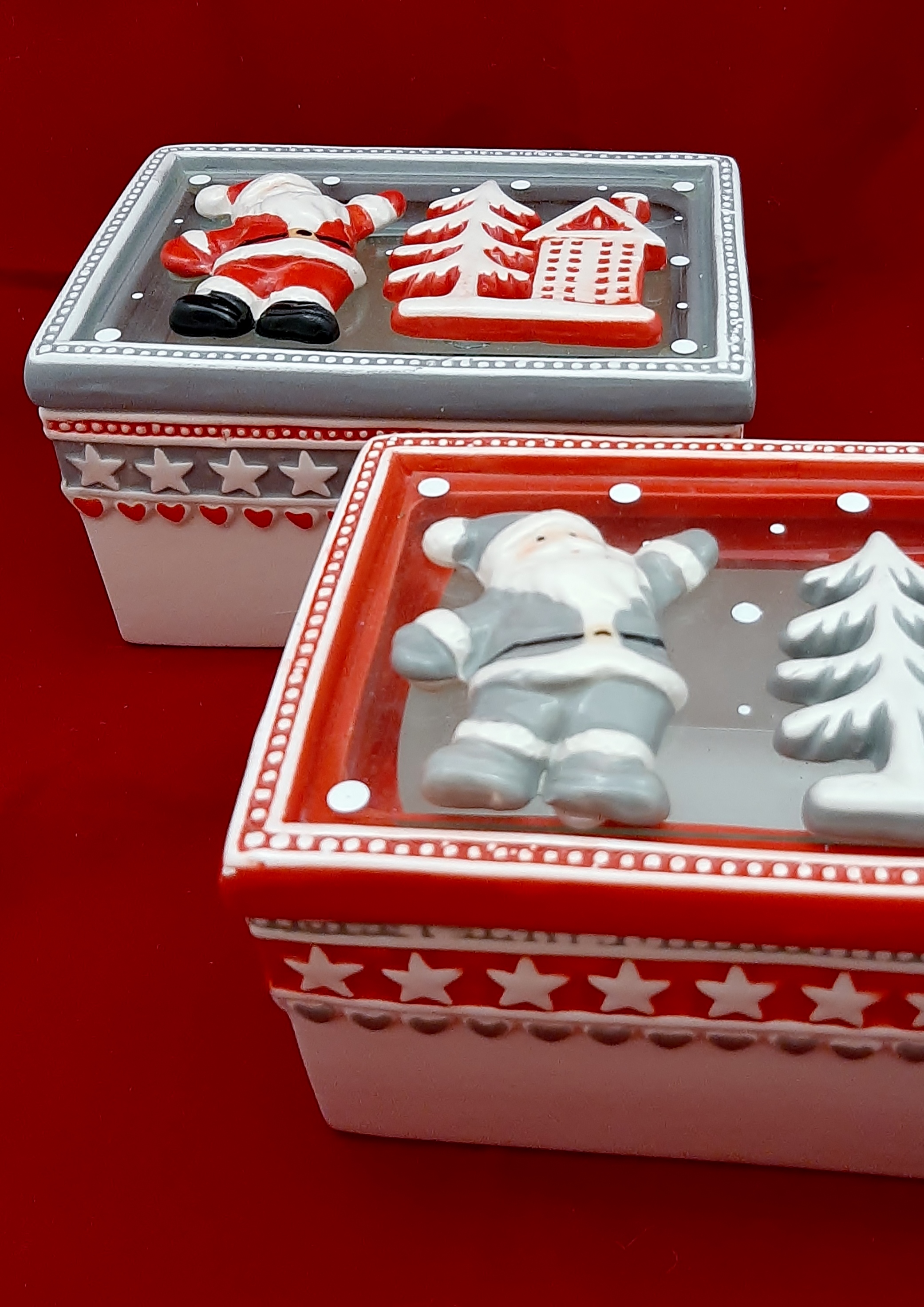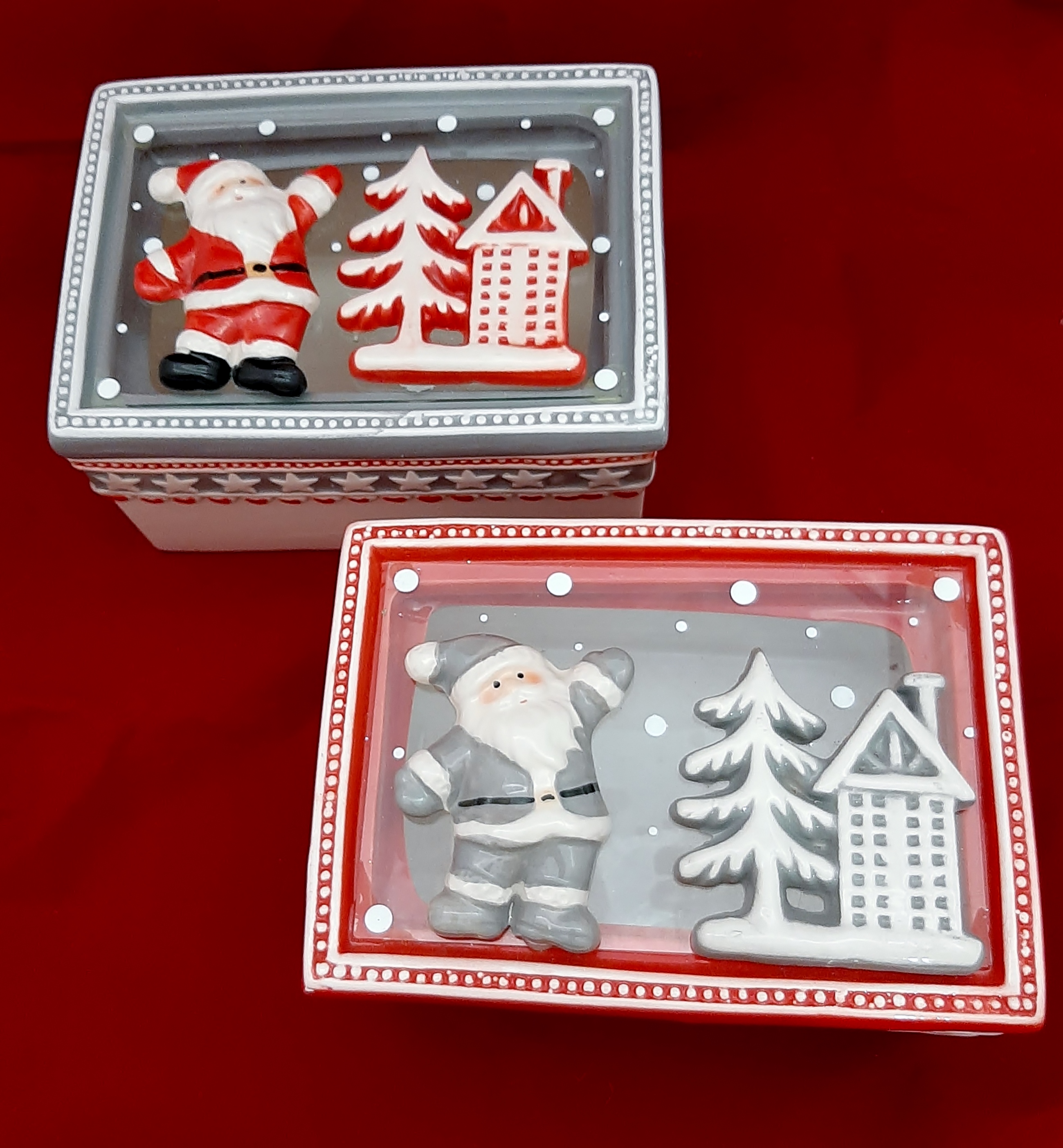 Χριστουγεννιάτικο κεραμικό κουτί σε δύο χρωματισμούς και σε διάσταση 16χ11χ9 εκ.