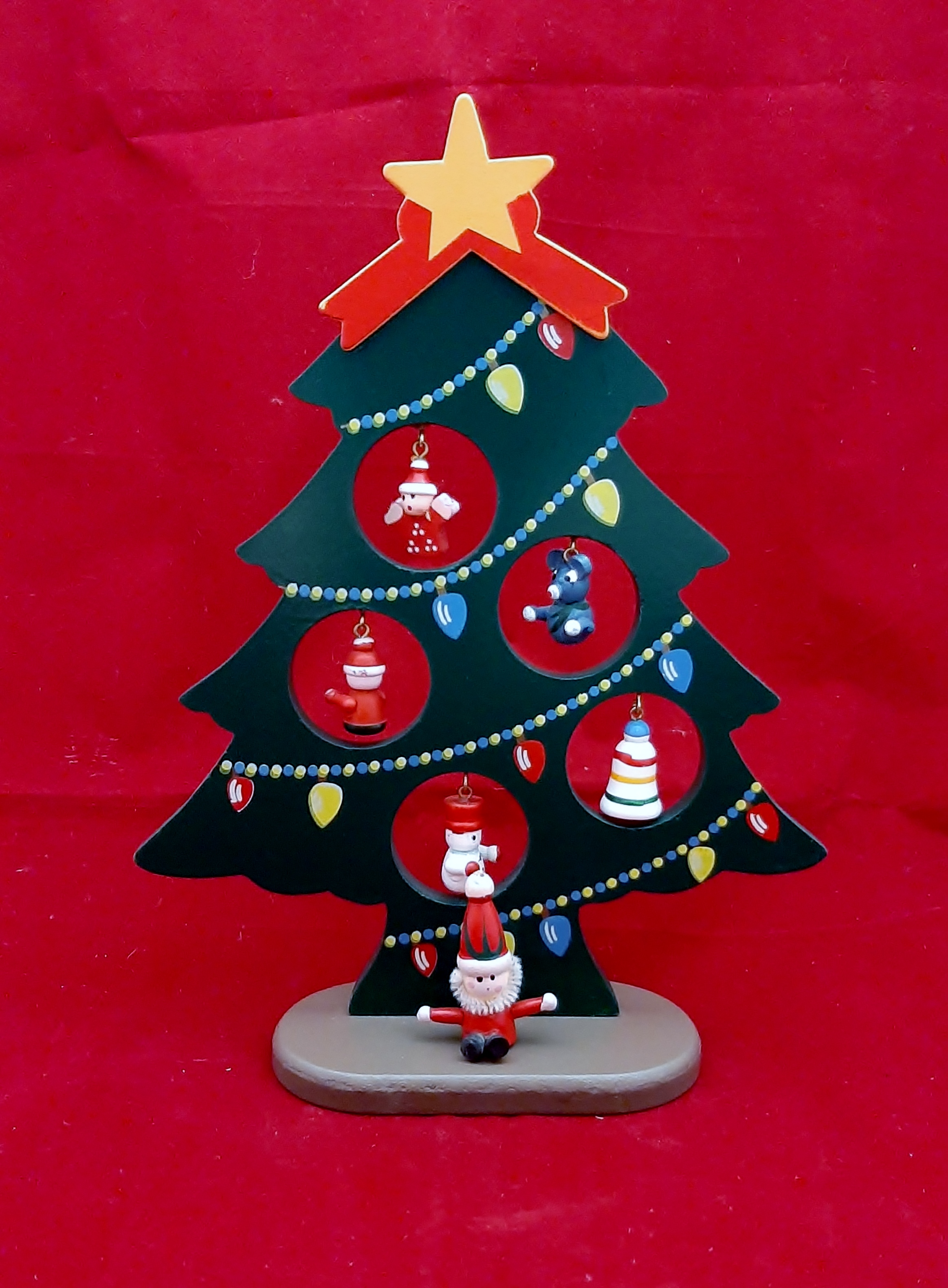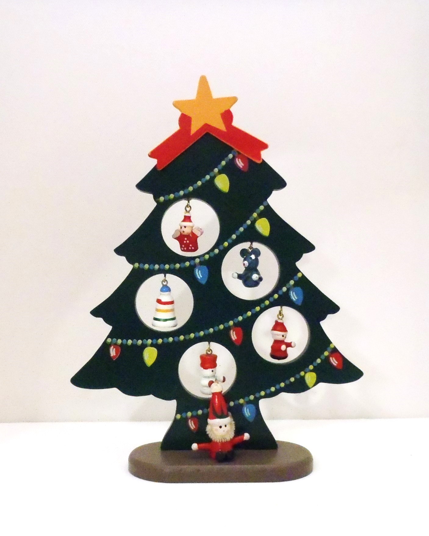 Χριστουγεννιάτικο ξύλινο δέντρο με στολιδάκια σε διάταση 23χ18εκ.